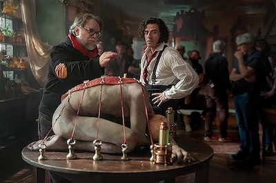 Del Toro’s scenes of Frankenstein disecting parts of bodies necessary to reconstruct life are understandably, per the filmmaker’s style, graphic and gory, and off-putting. But he’s showing off in front of fellow doctors at the University his knowledge of the body to harvest parts needed to resurrect a living human being, if he can.