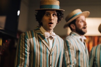 Ray (Alexander Skarsgård) is an imposing, sculpted, hunk who knows what he wants and how to get it. He encounters meek, young Colin (Harry Melling) in a pub having fun singing with his father and brother in a hokey Barber Shop quartet. These are the last two you’d ever expect to get together a few days later for a back alley BJ orchestrated by Ray. It may shock you down to the actual boot licking, but Director Lighton wastes no time making clear Ray is calling the shots.